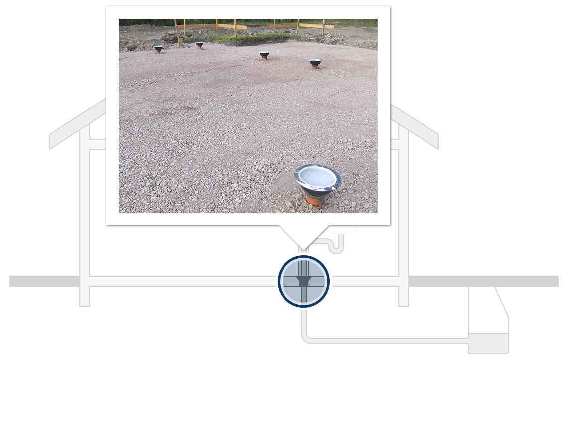 Tundish with integrated step protection for setting in floor slab concrete for perfect sealing to the underground sewer pipe. Gastight and watertight connection to the floor slab using integrated 3-ribbed seal. …