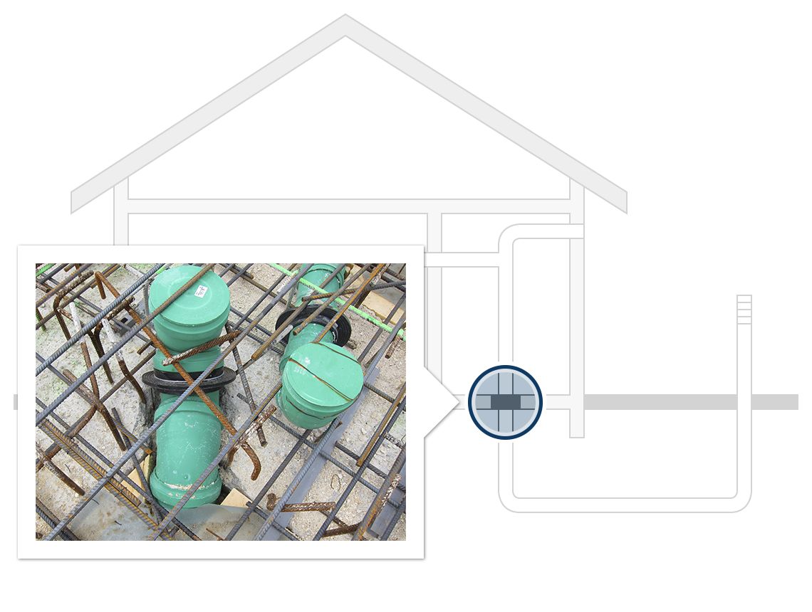 Water barrier flange for pressure-tight connection of waste water pipes in floor slabs.