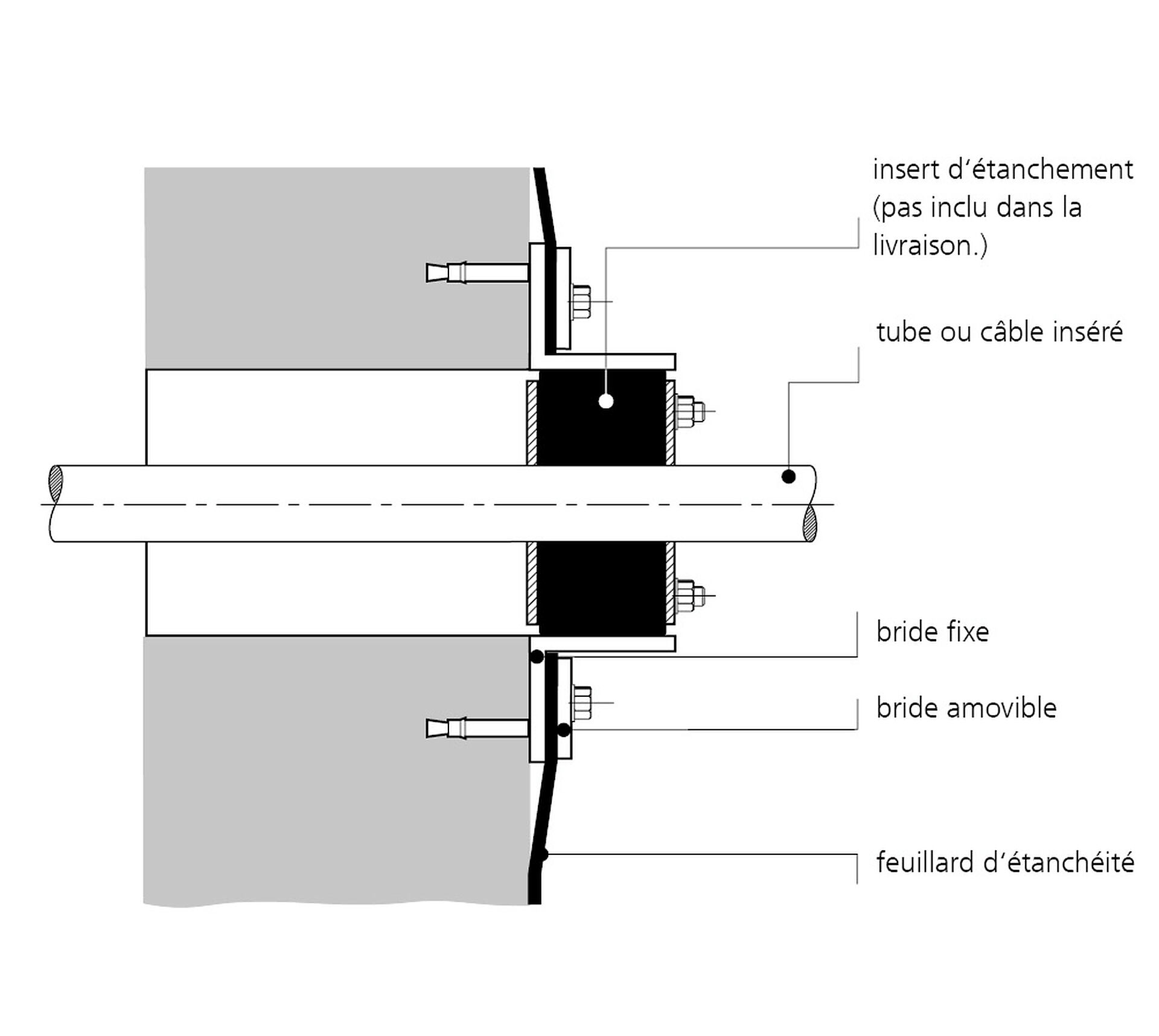 • Øa de bride fixe standard correspond au Øi de la gaine concernée + env. 330 mm (en cas de passage)